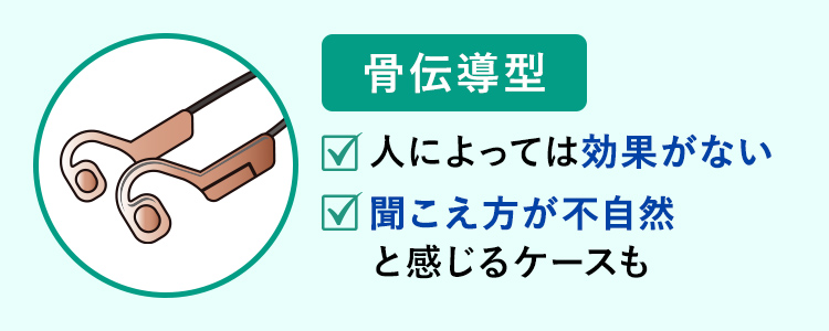 よく耳にする骨伝導タイプは、人によって聞こえにくい場合があるので要注意。