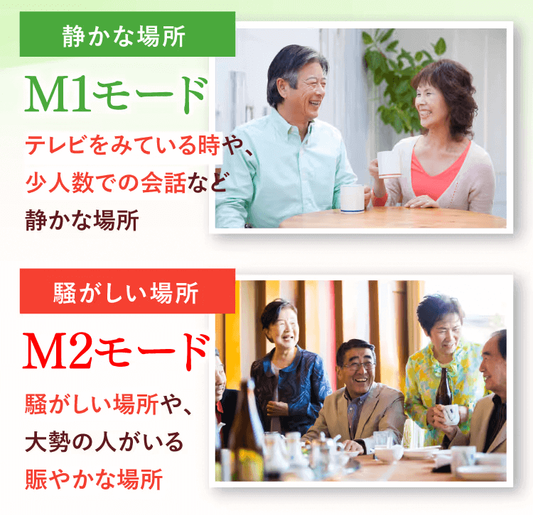 ミミクリアには、静かな場所に適したモードと騒がしい場所に適したモードの2モードがあり、